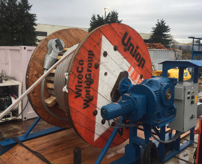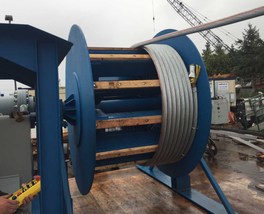As in most construction projects, this project had an aggressive timeline and could not start without the completed powered cable spoolers. Our customer was awarded the job to replace the aging cables that anchored the I-90 floating bridge to the bottom of Lake Washington. They had a general design but with the tight timeframe they could not complete it so we assisted in the completion of the design including gear drives, electrical functionality, and bearings. Because of timeframe, we began fabrication of some of the components while still finishing the design. We completed the project on time and the spooler operated as expected without any problems. The project also included fabrication of other miscellaneous barge components to retrofit the equipment barge used for pulling and replacing the cables.