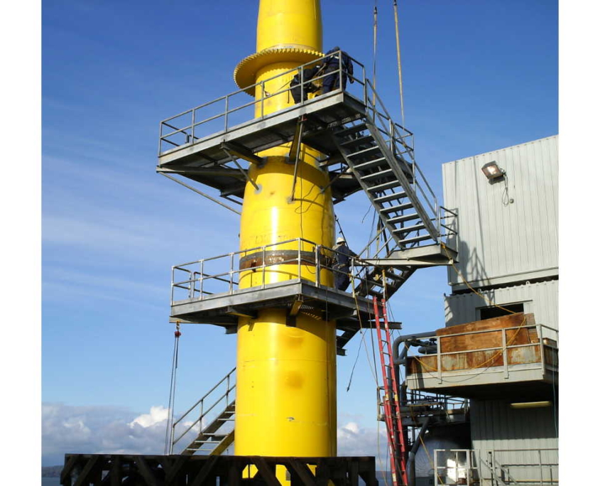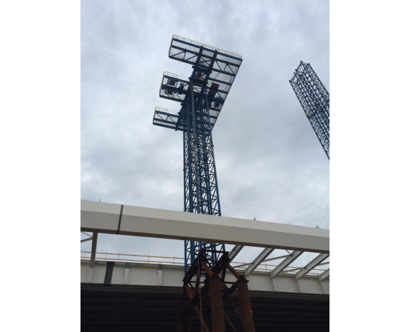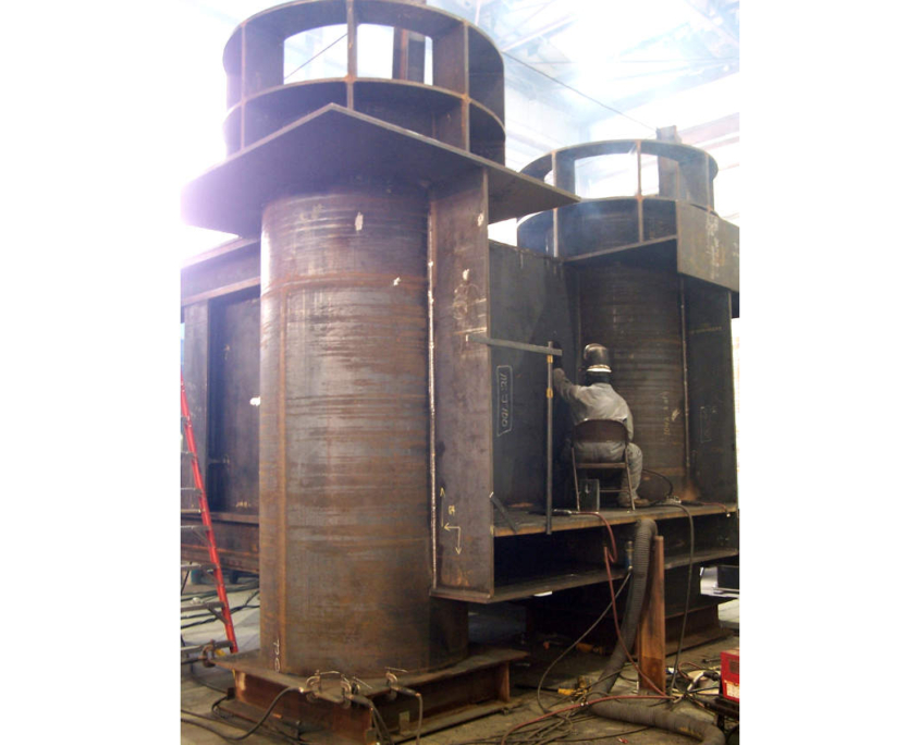 Our first detail and fabrication contract on the project was to supply eleven levels of work platforms to access and install the tower struts. All materials were supplied and installed on schedule without any fit problems.