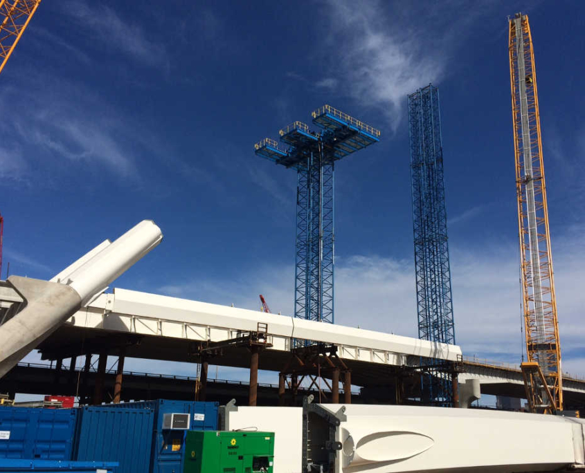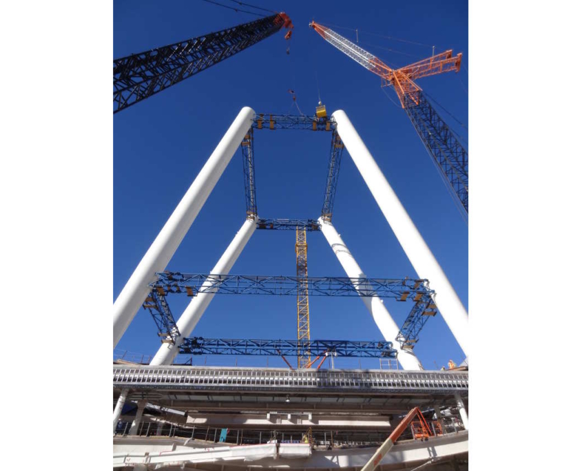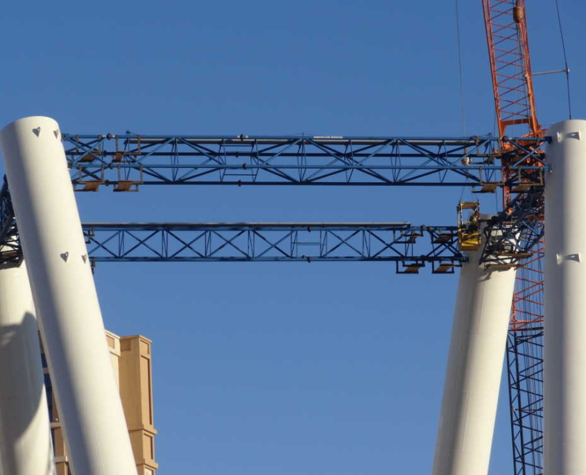 One of the newest signature bridges in Dallas is the Margaret McDermott Bridge which has slender steel arches supporting the bike paths on each side. The slender arches were not self-supporting until complete. We needed to detail and fabricated a significant amount of temporary steel to support the arches during construction. Some of these vertical members were later re-used during construction of the Las Vegas High Roller Observation Wheel, which Finnoe Design also supplied.