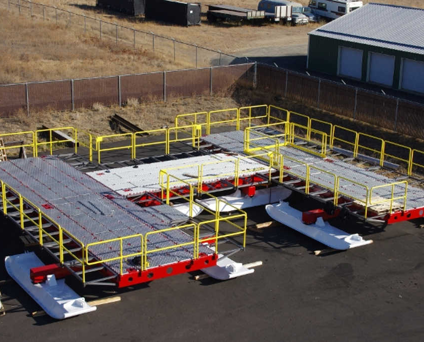This project was a fast paced Design-Build project. Lockheed Martin supplied a Scope Of Work (SOW) which included conceptual drawings showing overall sizes and general layouts. Using the SOW, Finnoe Design completed the design which was structurally analyzed by BBFM Engineers and approved by the customer. After the design was completed and approved we contracted Northwest Steel Fab to build the sleds and managed the fabrication process with them directly.