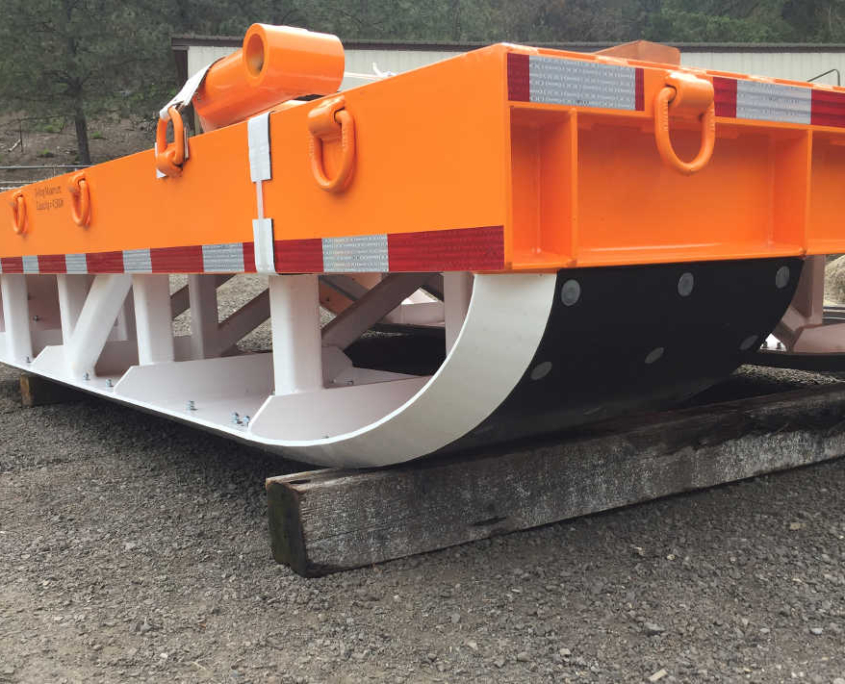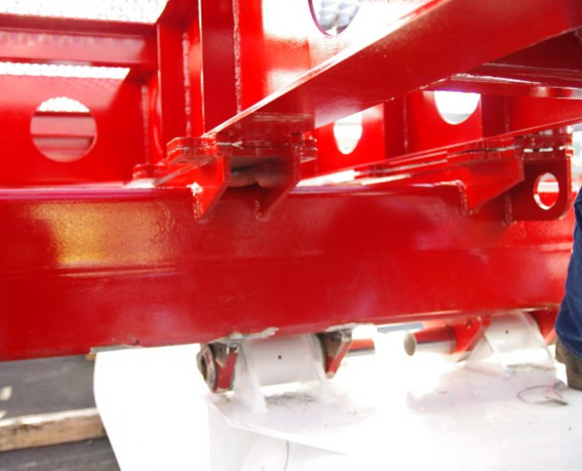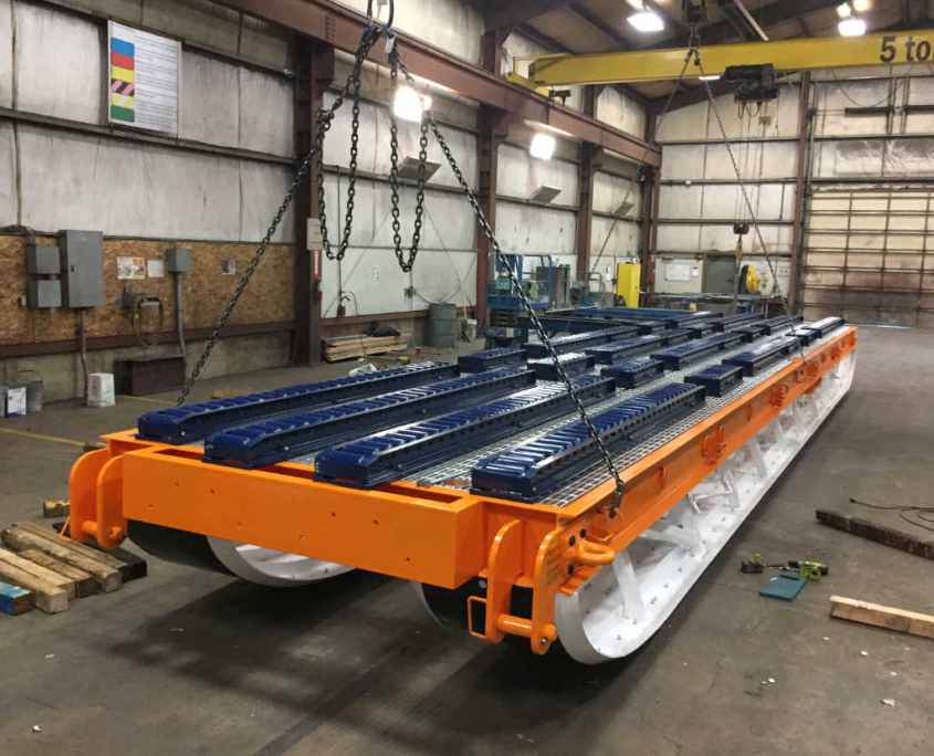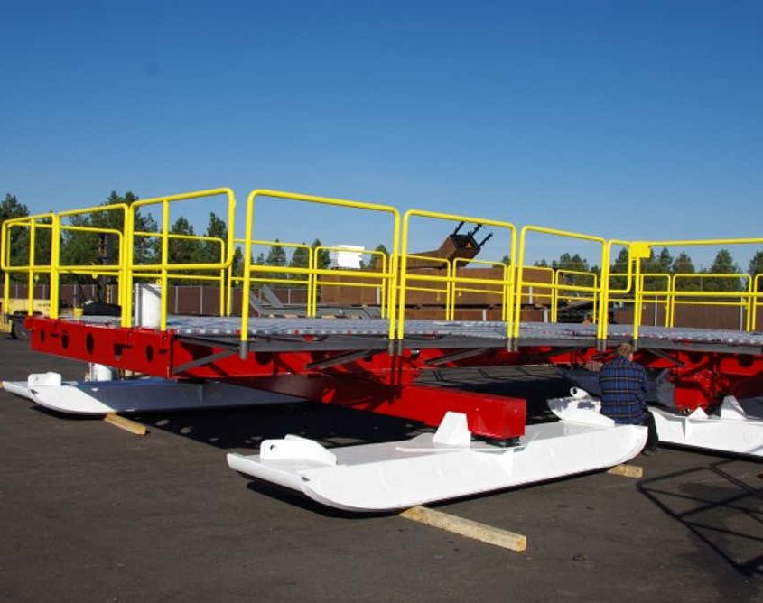 One of the design challenges was the requirement for low ground pressures while still providing a rigid structural frame to support the loads. The customer also had a concern about the sled sliding sideways as they were towing it so we came up with a solution, skegs that they could drop down when needed. This was a need they voiced well into the design phase but we had the flexibility to find a solution and get it into the design.