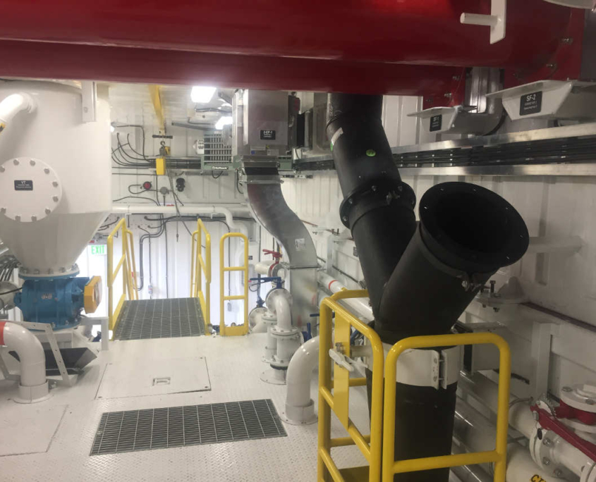 Tappan Zee Constructors custom built two concrete mixing barges to deliver concrete directly to the pours in the water. They came to Finnoe Design with the equipment they wanted to use and we helped them layout the equipment on the deck of the barge and detailed access platforms to the stairs and the equipment.