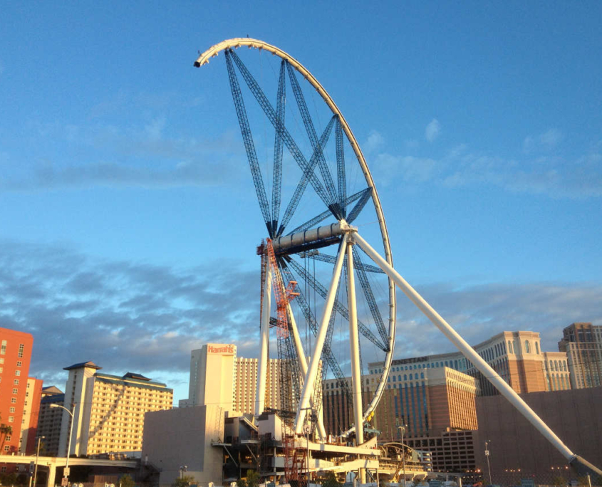 The High Roller is a 550-foot tall, 520-foot diameter giant observation wheel located in Las Vegas, Nevada. Like most projects in Las Vegas the owner had an aggressive timeline for project completion. American Bridge was designing the temporary steel as quickly as possible in parallel with the production permanent steel; therefore the temporary steel had to be designed, detailed, fabricated and delivered before the permanent steel in order to avoid costly erection delays. Finnoe Design detailed, fabricated and delivered the temporary steel meeting or exceeding every deadline. This allowed our customer, American Bridge, to complete the entire project ahead of schedule.
