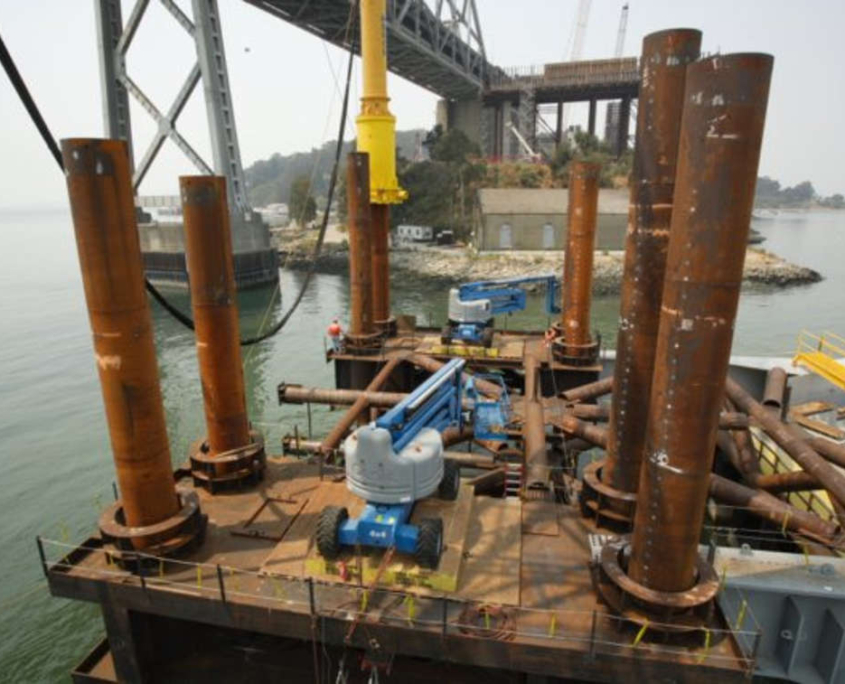 Finnoe Design began work on the San Francisco Oakland Bay SAS Bridge in 2007. Our involvement encompassed the entire bridge, from the top of the tower to the pile driving frames, and from the east end to the west end. By completion of the bridge in 2013, we had been contracted to detail over 140 individual temporary steel components and as construction progressed, we were also awarded temporary steel fabrication contracts.