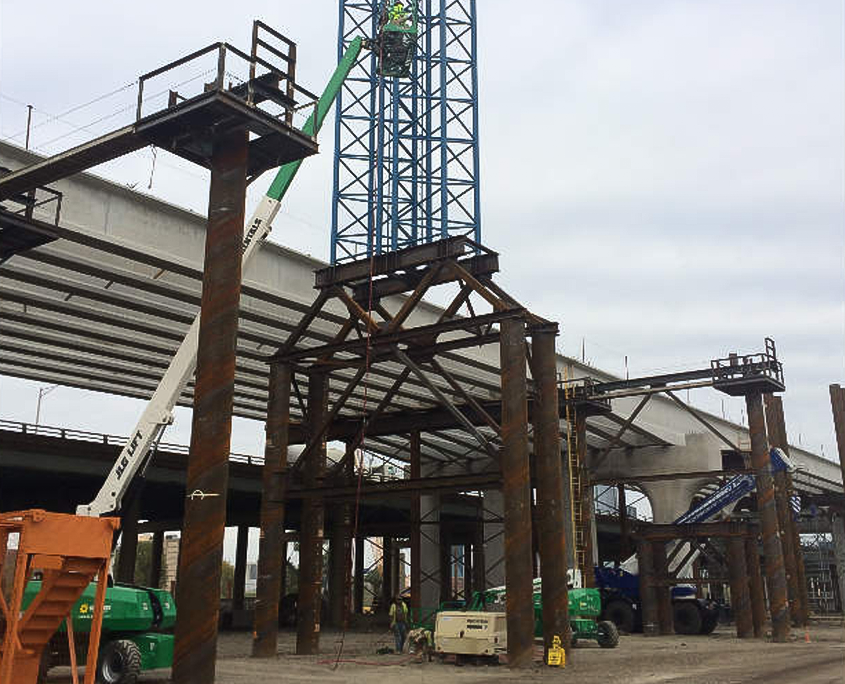 The aggressive timeline required us to detail and fabricate the bottom of the hold back tower while American Bridge was engineering and designing the top of the tower. From start to finish this tower was designed (American Bridge) detailed, fabricated, and shipped to the job site (Finnoe Design) and erected (American Bridge) in 6 weeks total time!