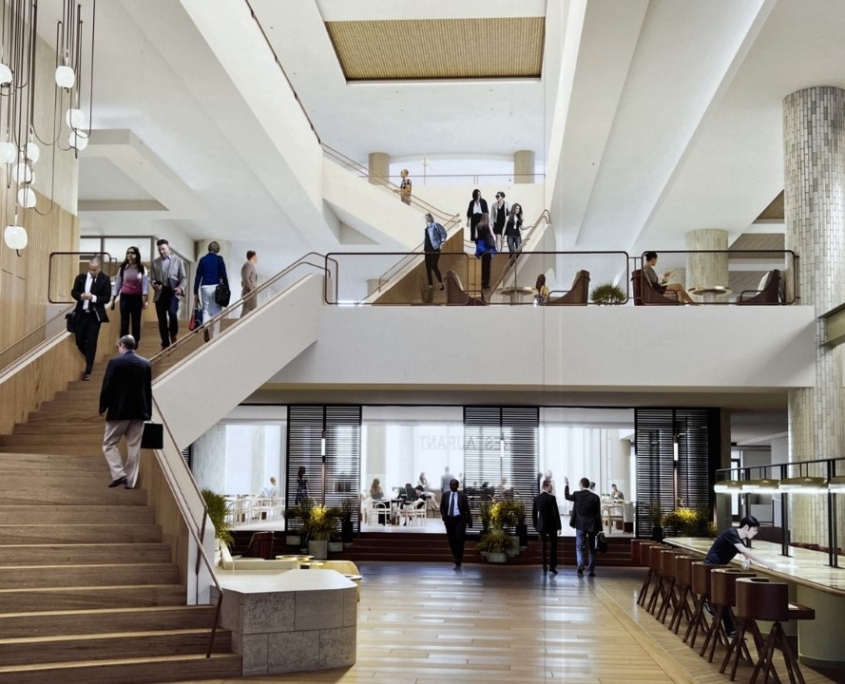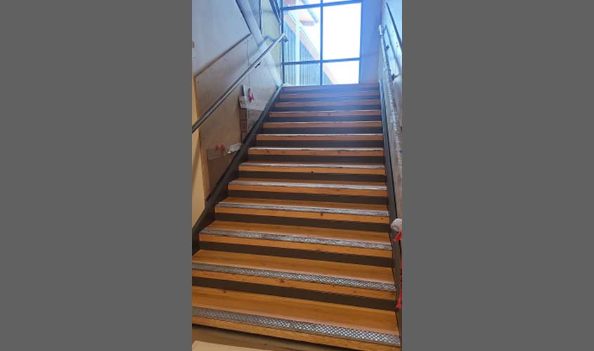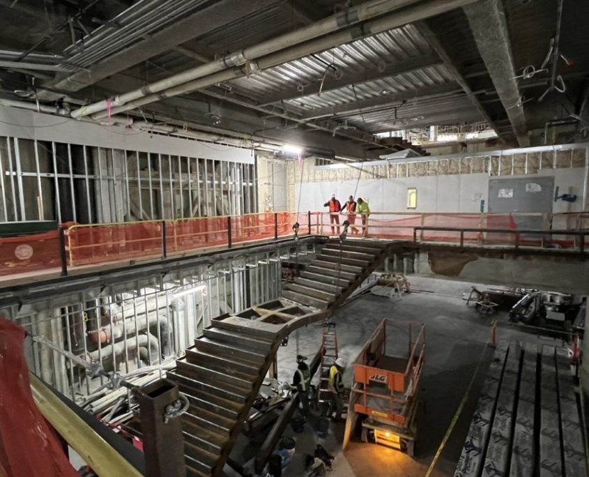 Using advanced scanning technology Finnoe manufactured the three story staircase into three pieces that were brought into the building and connected perfectly into place