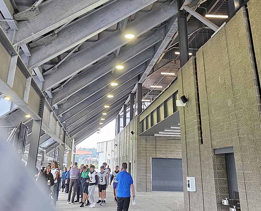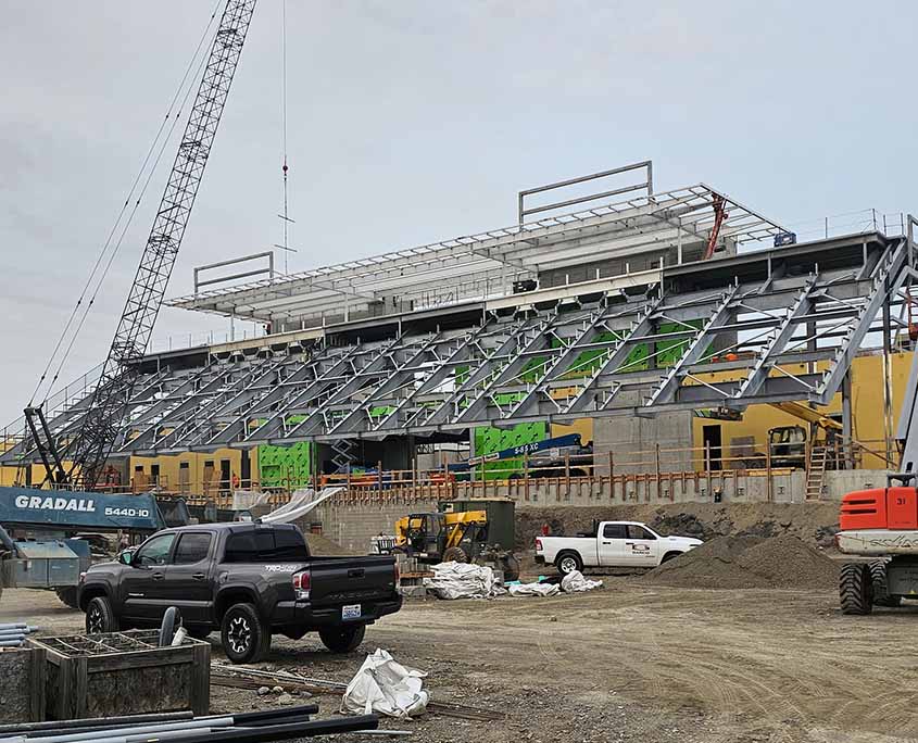 A 5,000 seat, open-air, stadium for Spokane Public Schools. Consisting of concrete footings and walls, masonry, metal framed walls, steel columns, steel beams and steel roof framing, totaling 427 tons of steel elements.