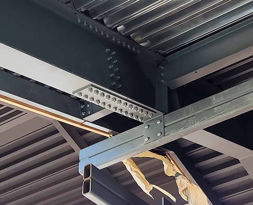 Connections between new and existing building with grating & guardrail system requiring to be design around large equipment required multiple jobsite visits by our in-house detailing team in order to 3-D laser scan current conditions to adjust our steel ensuring a successful installation.