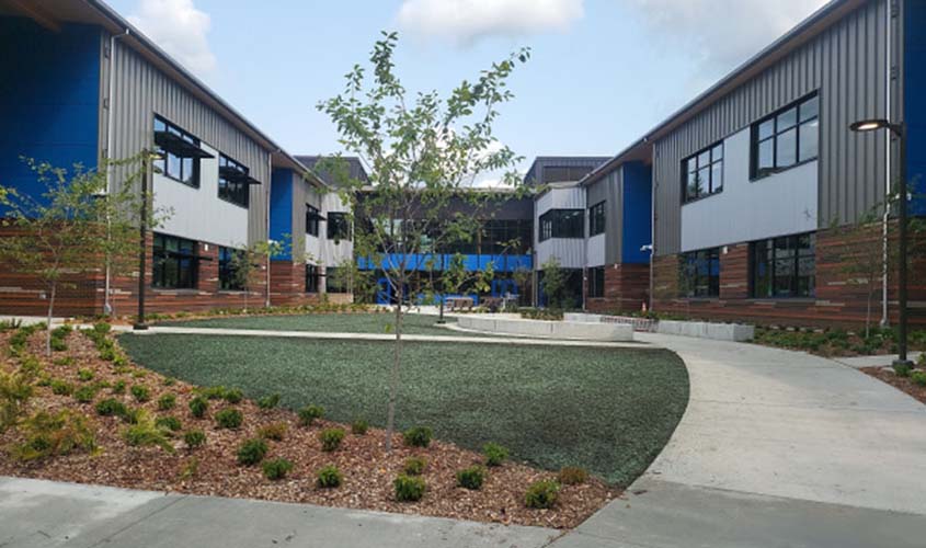 Over 81 thousand square ft School. Structural Steel framing with integrated Cross Laminated Timber members, and delegated design of steel & timber stairs and railing systems throughout the school.